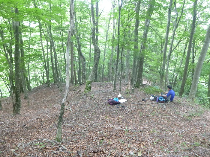| S1 本日のランチ場所であり、超自然の中なのだ。 ここは原小屋沢支流のボッチ沢右岸尾根で下ればガータゴヤノ滝である。 |