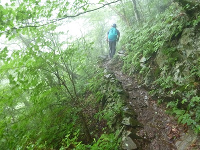 ![]() 9 そこそこ水量がありビックリする。昨夜からの降雨のせいだろう。 標高は既に1250mはあるところなのだから。この後も沢を何回も渡り 返しながら高度を稼ぐ。 |