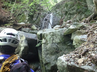 | 5 沢に入って間もなく、左、右と曲がってその後に現れたF1の滝。 |