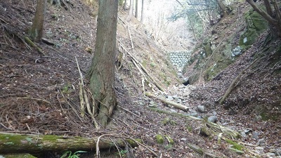 | 25 ここは石積がしっかりしている。 26→ 振り返りみたV字谷だが 大量の落ち葉が埋めているのだ。 と云う事は何が問題かいうまでもナシ! 緩まない我らは果敢に進んだ。 |