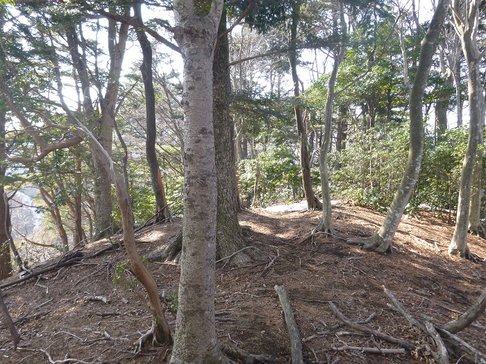 | 24 七沢山(西峰)に上がりました。(14:30)北から吹き抜ける風がさむ〜い‥。 時間も時間だし、今日は土曜日だし、抜ける北風は超寒いし人の気配は全くなし。 |