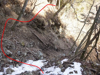 | 22は崩壊地その2である。そしてもう少し進むと崩壊地その3登場となる。 その3はコレで踏破済みなので恐くないのだ。(^^)v |