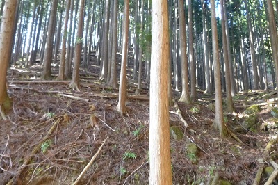 11 植林地となり左手に尾根が見える。 |